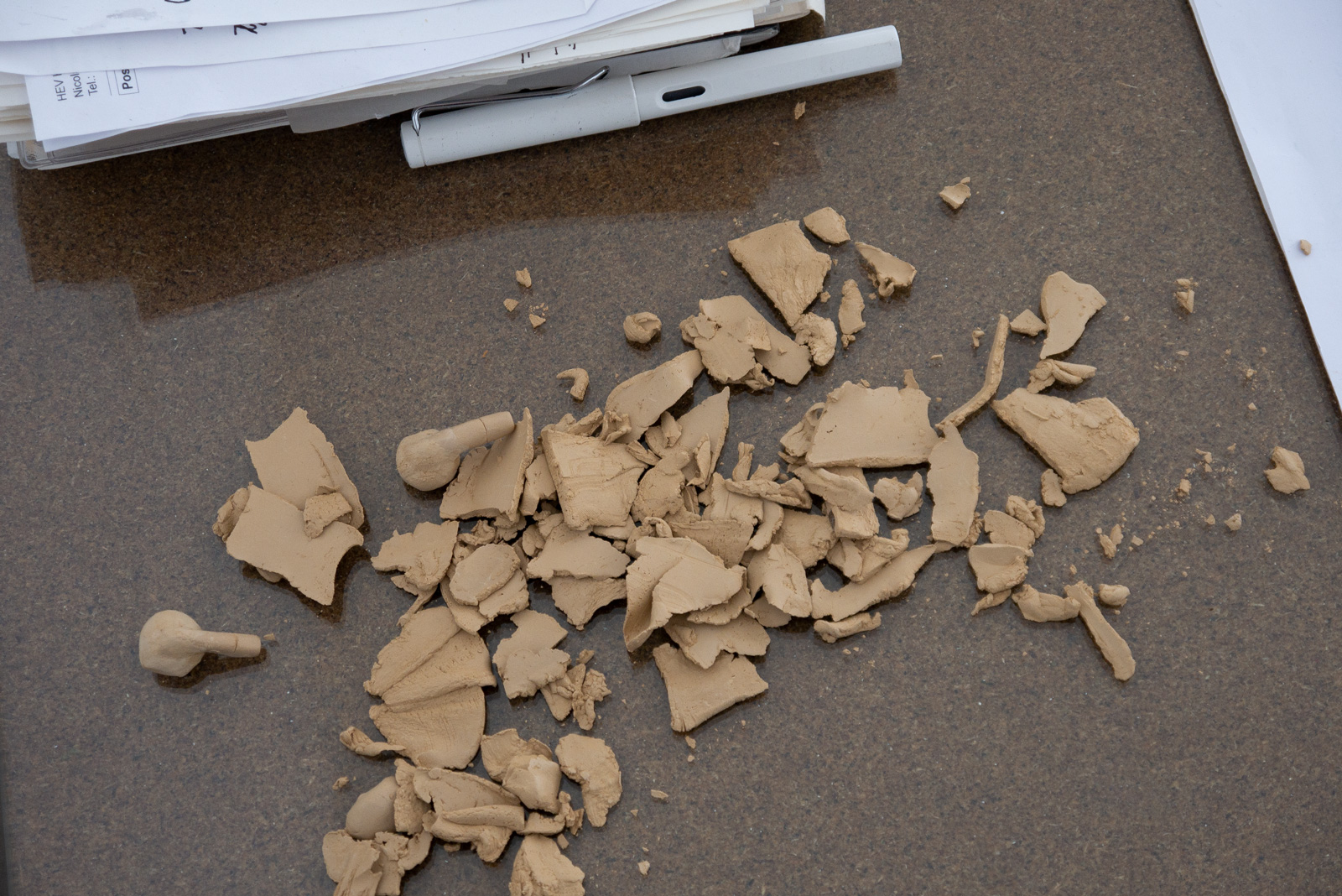 An intervention aimed at connecting the internal space with the exterior space. Installation made of plywood, styrofoam, unfired clay,